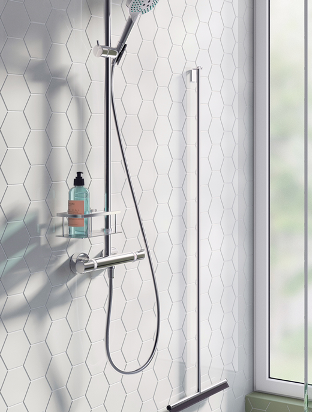 Der Duschabzieher ist Teil unserer Badezimmerkollektion SIDELINE und besteht aus Edelstahl mit polierter Oberfläche und einer schwarzen Silikonklinge. Das Silikon ist nicht austauschbar, sondern von hoher Qualität, um während der Produktlebensdauer zu halten.
